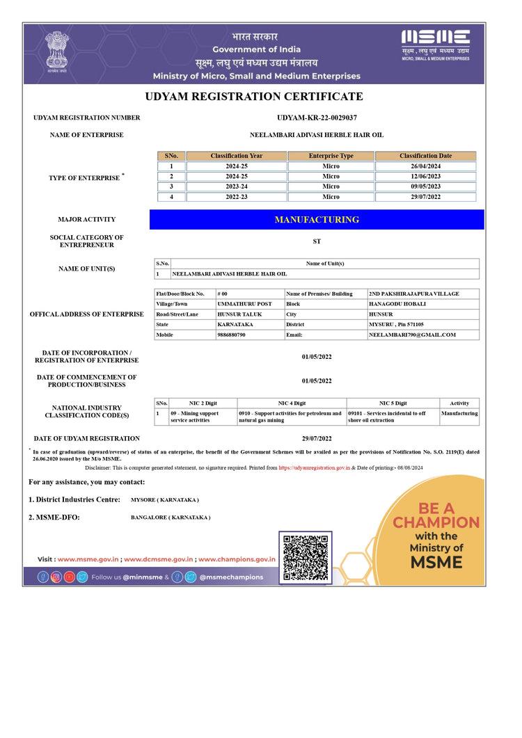 KARNATAKA HAKKI PIKKI NEELAMBARI HERBAL Hir oil